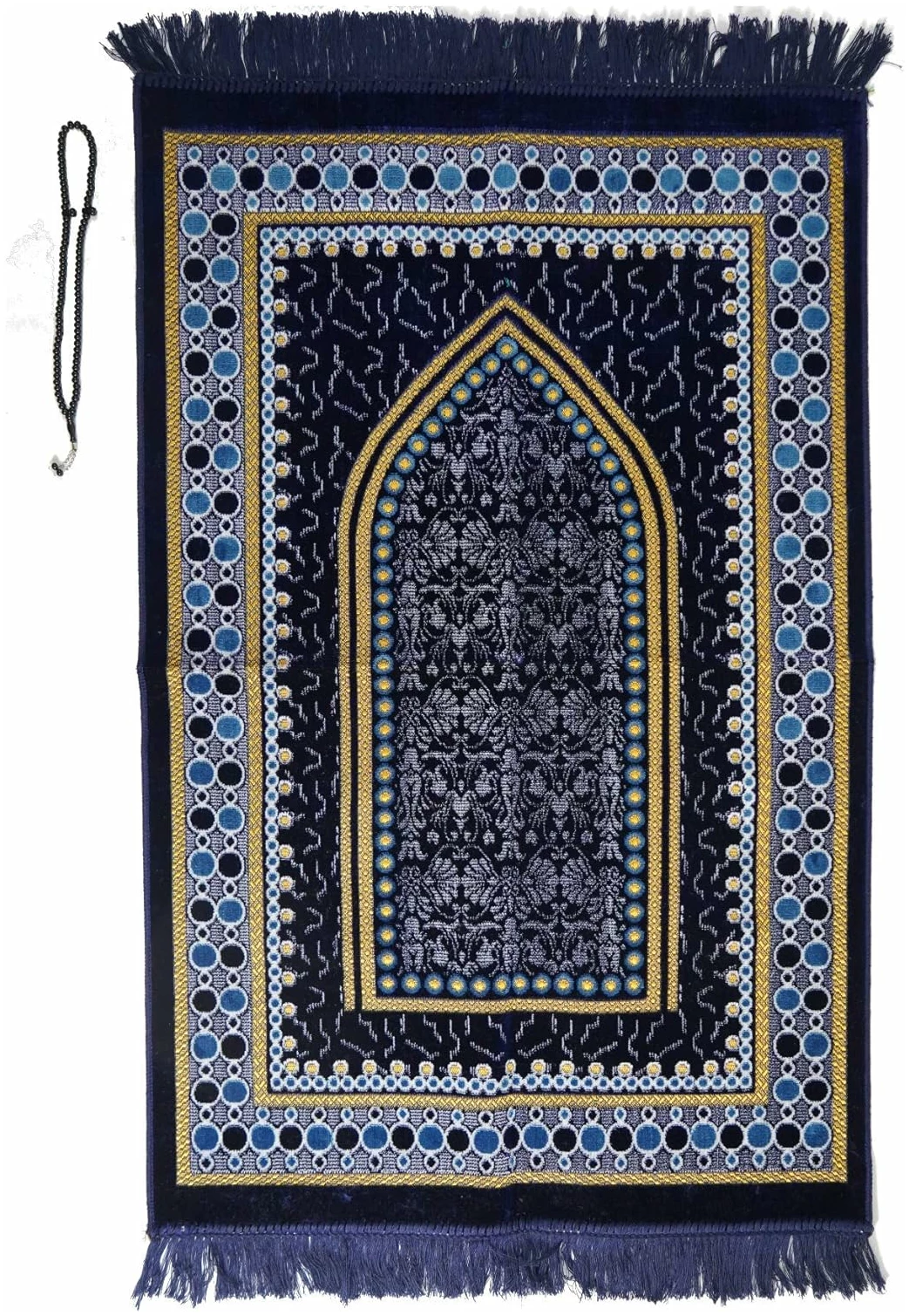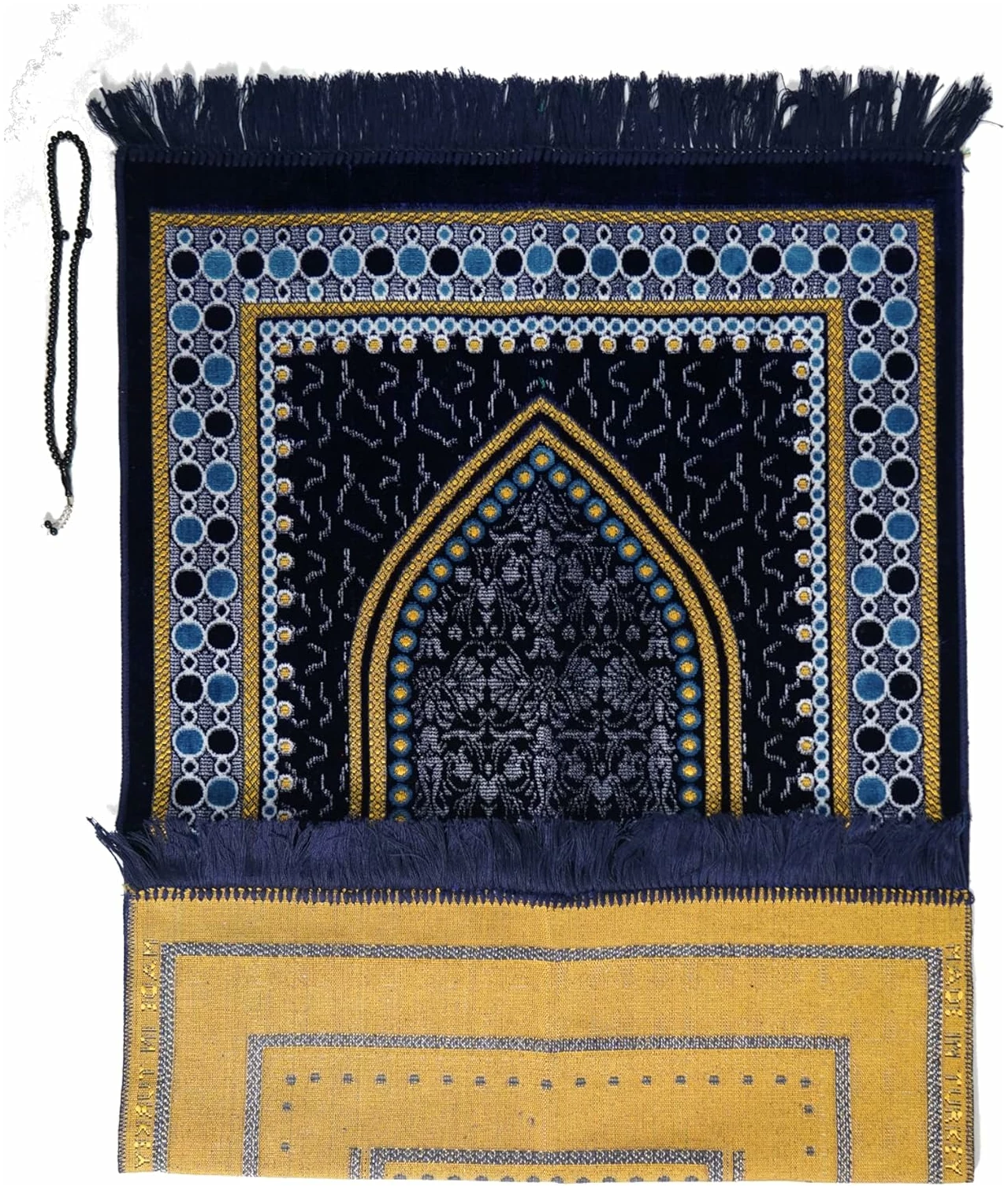 Tapis de prière en velours (500 g) | Tapis de prière musulmane | Taille : 120 x 70 cm | Fabriqué en Turquie. Chapelet pour Tasbih offert