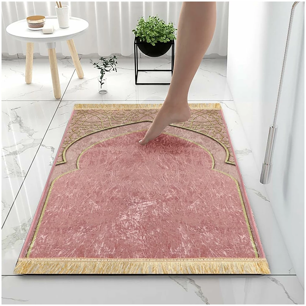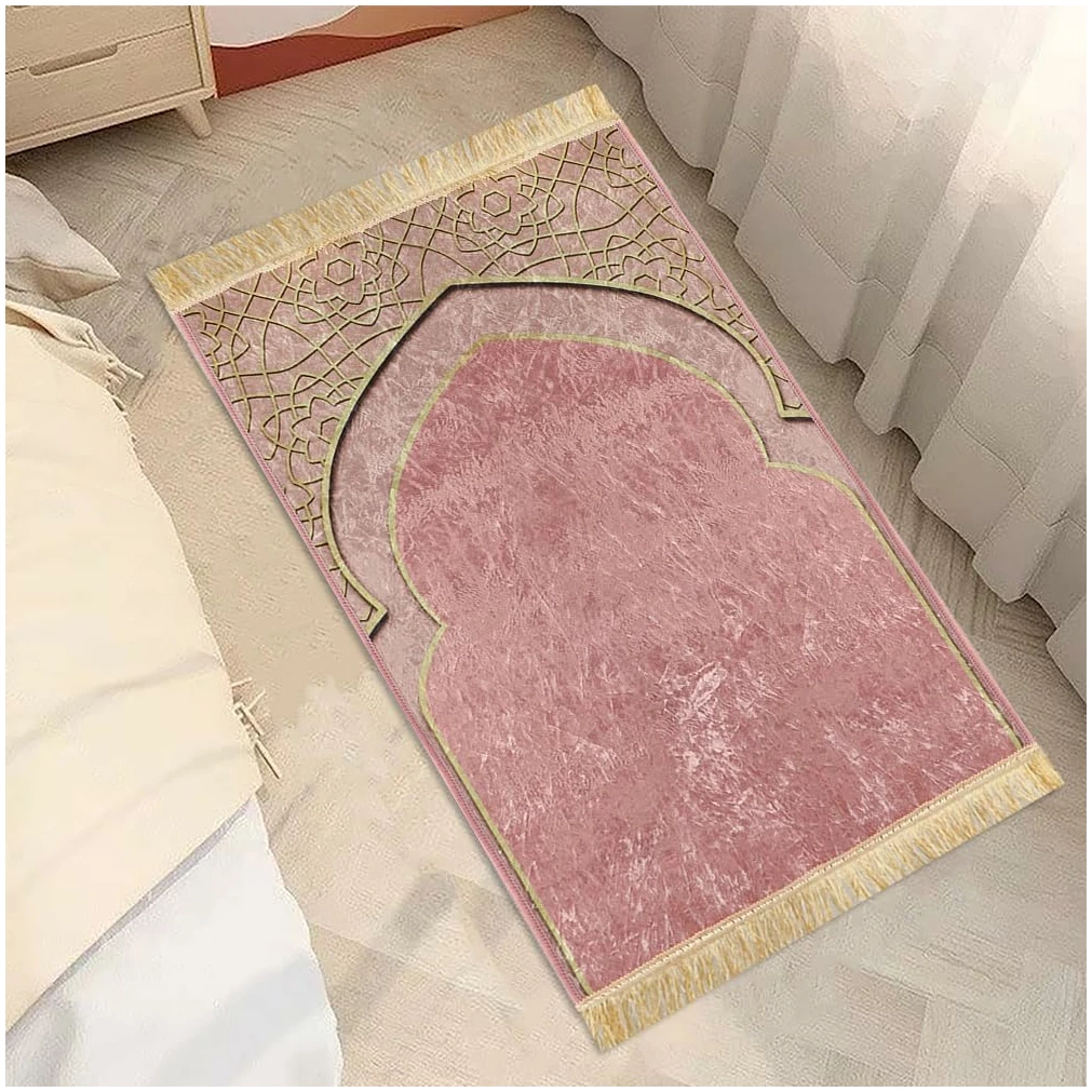 1.Fabriqué à partir de peluche et de polyester, le tapis de prière est doux, lisse et confortable avec une belle brillance, durable et parfait pour un usage quotidien.