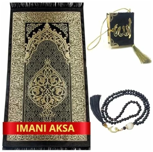 ☪️ Coffret cadeau avec tapis de prière, Tesbih (99 perles) et mini coran (pour la voiture).