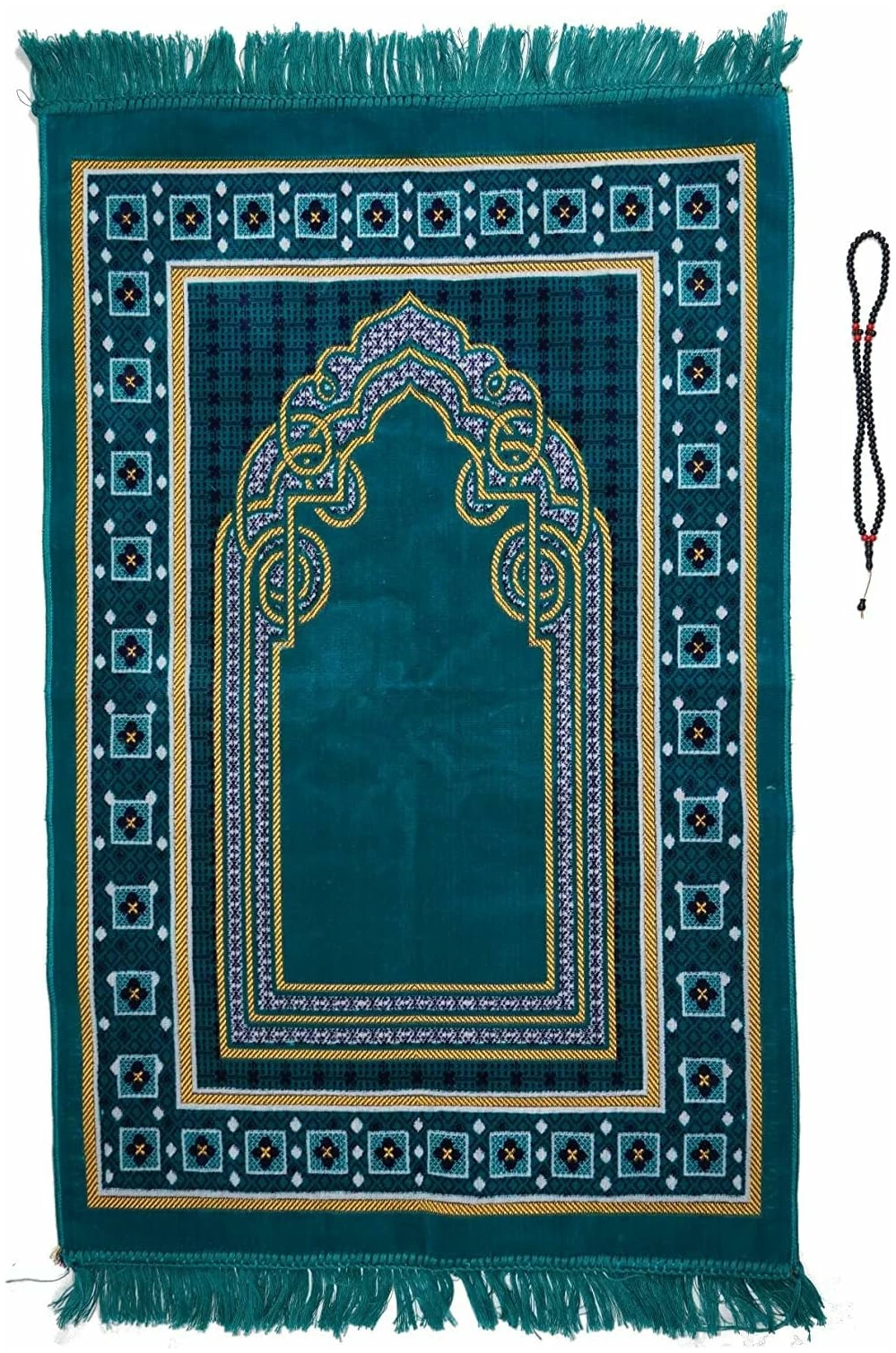 Tapis de prière en velours (500 g) | Tapis de prière musulmane | Taille : 120 x 70 cm | Fabriqué en Turquie. Chapelet pour Tasbih offert