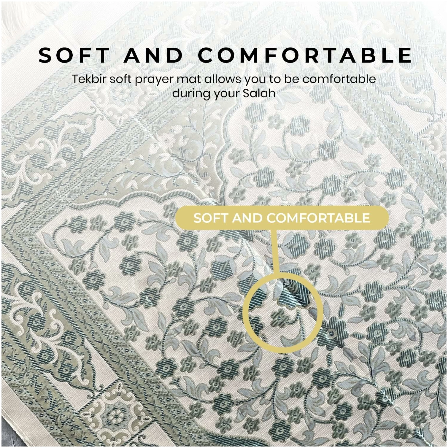 Doux et confortable : grâce à sa texture douce, le tapis de prière Tekbir vous permet d’être à l’aise pendant la prière islamique sur n’importe quelle surface à l’intérieur ou à l’extérieur. Ce tapis de prière islamique de qualité supérieure, les perles de prière Tasbih et le livre de sourate du Coran sont les meilleurs cadeaux spirituels islamiques à offrir à vos amis ou votre famille pour une excellente expérience de prière.