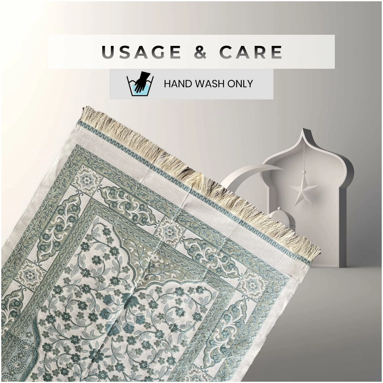 Utilisation et entretien : nous recommandons le tapis de salah islamique dans ce coffret cadeau islamique est uniquement lavé à froid à la main pour conserver la belle qualité et le confort de ce tapis de prière islamique Tekbir afin que vous puissiez continuer à profiter régulièrement de votre prière salah sur ce tapis de prière islamique à la maison, au bureau ou comme tapis de prière de voyage