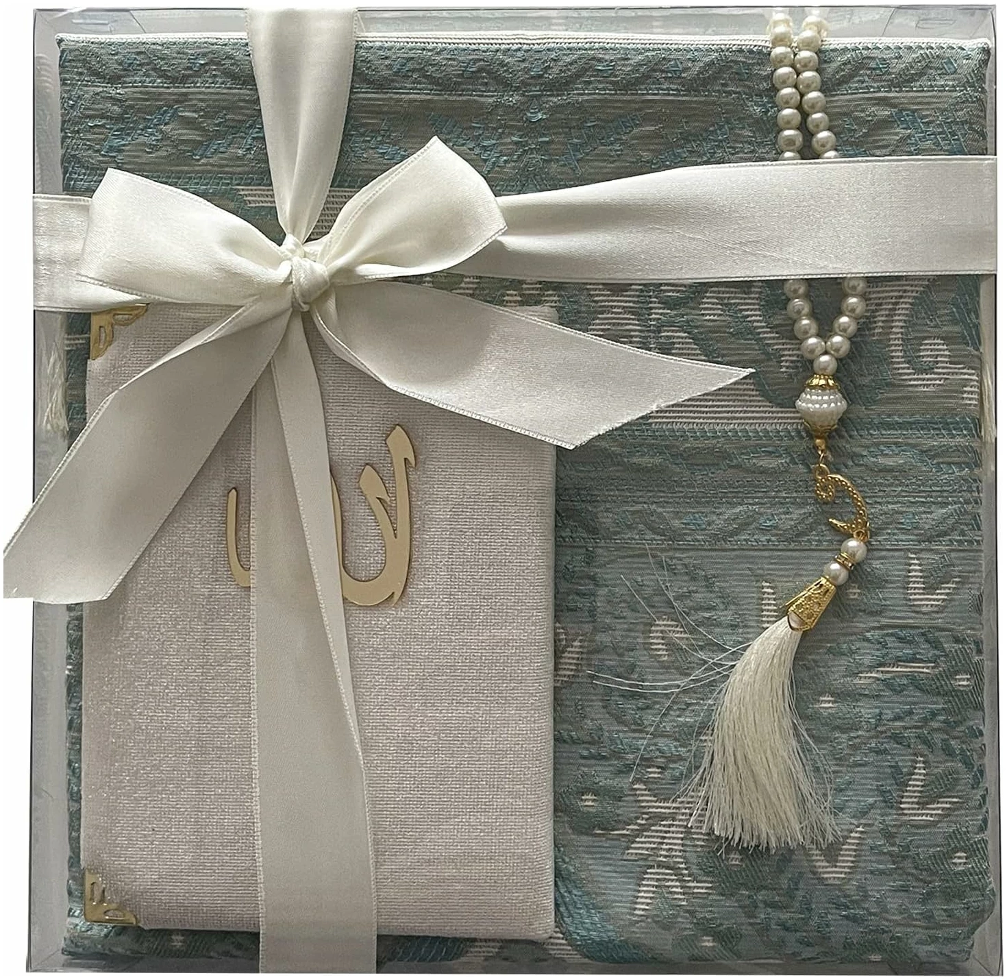 Coffret cadeau : le coffret cadeau islamique Tekbir gris pour homme ou femme contient un beau tapis de prière avec des motifs islamiques traditionnels, un tasbih de 99 perles de prière et un livre de Coran de sourate. C’est un excellent cadeau spirituel islamique pour différentes occasions islamiques comme l’Aïd, un mariage, une Nikah, ou comme cadeau pour les étudiants islamiques ou comme cadeau de ramadan. Notre coffret cadeau islamique est livré dans une boîte transparente décorée d’un ruban doux, prêt à être offert aux musulmans comme cadeau islamique.